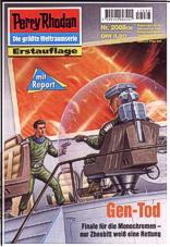 Band 2088: Gen-Tod Die unter dem Befehl der negativen Superintelligenz SEELENQUELL stehenden Arkoniden haben Terra und die anderen Planeten des Solsystems besetzt. Um eine vernichtende Weltraumschlacht zu verhindern hat sich Perry Rhodan mit seiner Flotte zurückgezogen. Von dort aus agieren die Terraner aus dem Verborgenen. Mit Kommandoaktionen gehen sie gegen SEELENQUELL und die arkonidischen Truppen vor. Zuletzt gelang es einem Kommandotrupp auf Terra direkt schlimmeres zu verhindern: Morkhero Seelenquell wurde dabei erschossen. Alle warten auf die Reaktion der SEELENQUELL... Die Monochrom-Mutanten steuern auf eine Katastrophe zu. Tausenden von jungen Menschen droht der GEN-TOD ... |