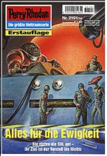 Band 2191: Alles für die Ewigkeit Während sich in der Galaxis Tradom die Entscheidung zwischen den Flotten aus der Milchstraße und der Inquisition der Vernunft anbahnt, ist das Raumschiff SOL in einer anderen Region unterwegs: Das Hantelschiff operiert unter dem im Ersten Thoregon, einer Art Miniatur-Universum. Die Menschen erkennen unter anderem, dass alle Sonnen des Ersten Thoregons eine gemeinsame Intelligenz bilden: die Superintelligenz THOREGON. Diese hat ihre eigenen Pläne, die vorerst in der Schaffung eines so genannten Analog-Nukleotids gipfeln. Gelingt diese Entwicklung, droht den Menschen und den anderen Völkern in der Milchstraße die Vernichtung. Die einzigen, die gegen diese ungeheuerliche Gefahr antreten können, sind Atlan und seine Begleiter. Daher wagen sie ein riskantes Unternehmen: Terraner und Algorrian geben ALLES FÜR DIE EWIGKEIT ... |