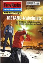 Band 2196: Metanu-Nabelplatz Während sich in der Galaxis Tradom die Entscheidung anbahnt, operiert die SOL im Ersten Thoregon. In diesem kosmischen Sektor will die Besatzung unter dem Kommando des Arkoniden Atlan die gefährlichen Pläne der Superintelligenz THOREGON vereiteln. Diese Superintelligenz hat tatsächlich vor, in die Struktur des Kosmos einzugreifen, um diesen nach ihrem Willen zu verändern. Ihre Manipulationen, die vorerst in der Schaffung eines so genannten Analog-Nukleotids gipfeln, bedrohen auch die Menschen und die anderen Völker in der Milchstraße. Die einzigen, die gegen diese ungeheuerliche Gefahr antreten können, sind Atlan und seine Begleiter. Zu diesen gehören mittlerweile auch die letzten zwei Algorrian. Gemeinsam gelingt der Vorstoß in ein merkwürdiges Kontinuum - nach METANU-NABELPLATZ ... |